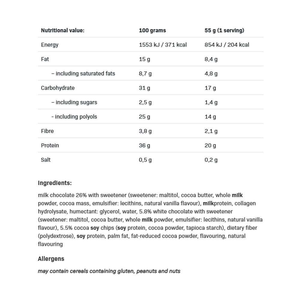 FITKING DELICIOUS PROTEIN BAR contiene un’elevata quantità di proteine da siero di latte e soia, entrambe con eccellente profilo amminoacidico. È il perfetto equilibrio tra un apporto proteico di alta qualità e un basso contenuto di zuccheri.