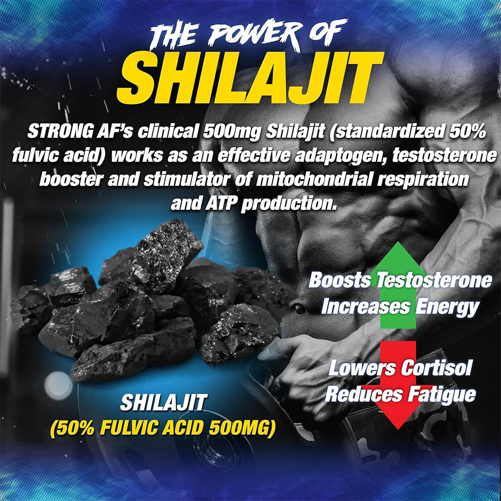 OTTIMIZZAZIONE DEGLI ORMONI ANABOLICI: La combinazione di Shilajit e Alpha-GPC in STRONG AF aiuta a potenziare i regolatori chiave della crescita muscolare aumentando il testosterone e riducendo il cortisolo.