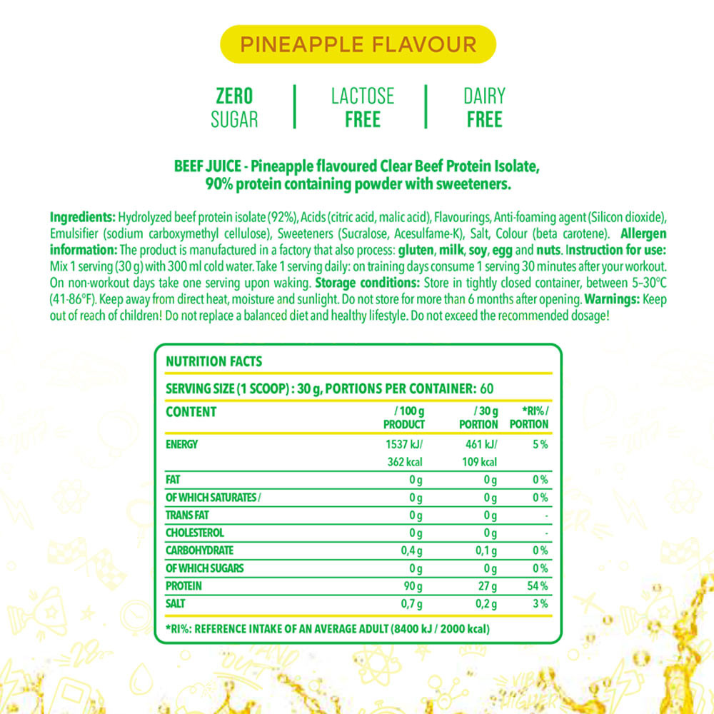 Il nostro Clear Beef Protein Isolate Beef Juice si distingue non solo perché fornisce un isolato proteico di manzo idrolizzato di alta qualità con un eccezionale contenuto proteico del