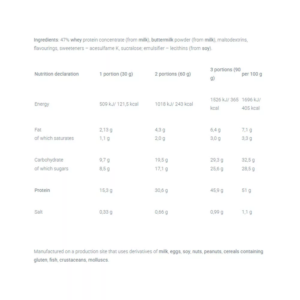 Whey Protein Xplode Powder è un prodotto unico, ricco di proteine, a cui è impossibile resistere. Ti permette di preparare rapidamente e facilmente uno shake proteico gustoso dalla consistenza densa e cremosa (grazie all’aggiunta di polvere di latticello). Con ogni porzione (30 g), ricevi oltre 15 g di proteine di alto valore sotto forma di concentrato di proteine del siero del latte (WPC), che contribuisce alla crescita e al mantenimento della massa muscolare.