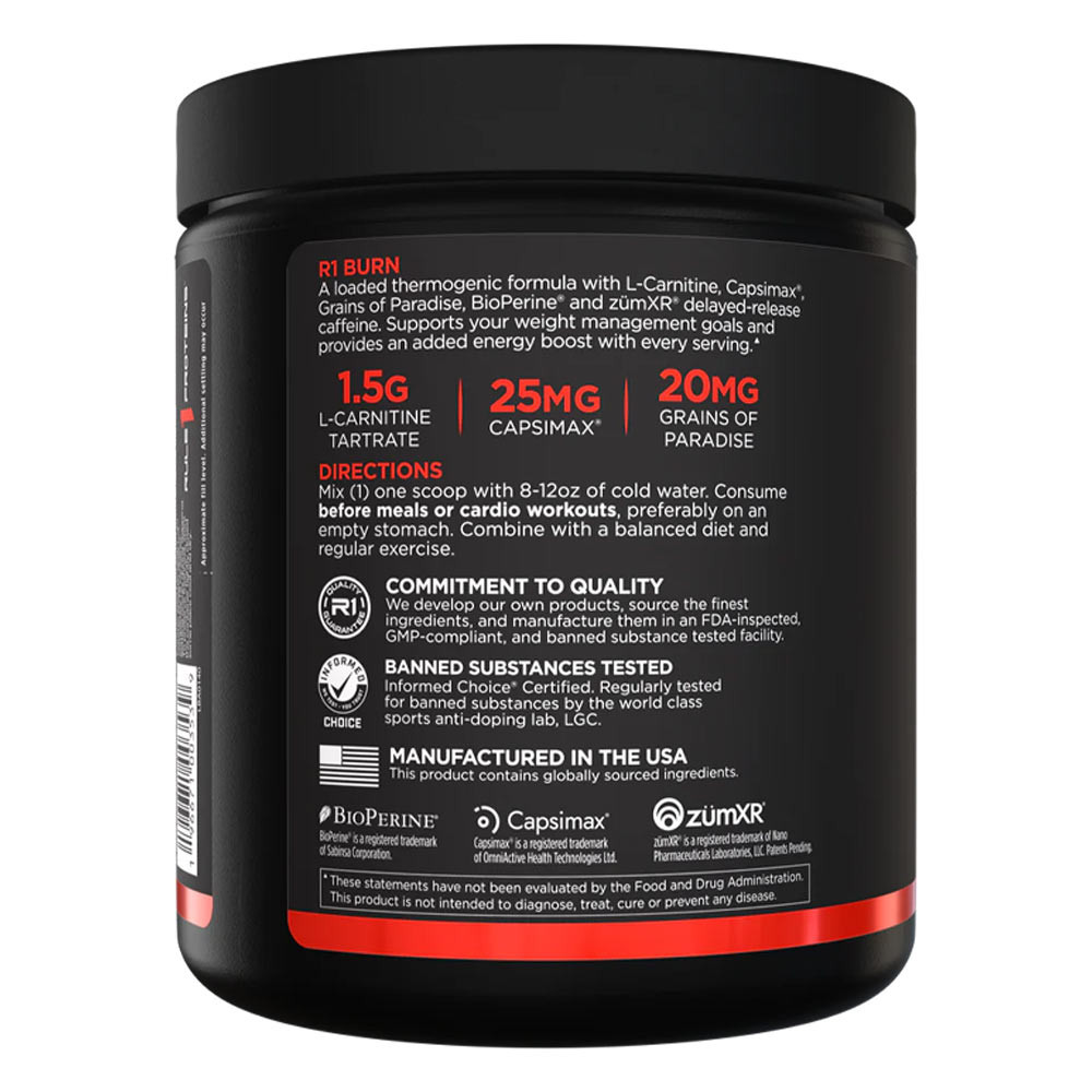 Burn contiene una formidabile miscela di ingredienti termogenici, tra cui una combinazione multi-caffeina derivata da chicchi di caffè anidri, foglie di tè, semi di guaranà e fonti microincapsulate a rilascio ritardato. Una singola dose di polvere o di capsule fornisce l'equivalente energetico di circa due tazze di caffè forte.