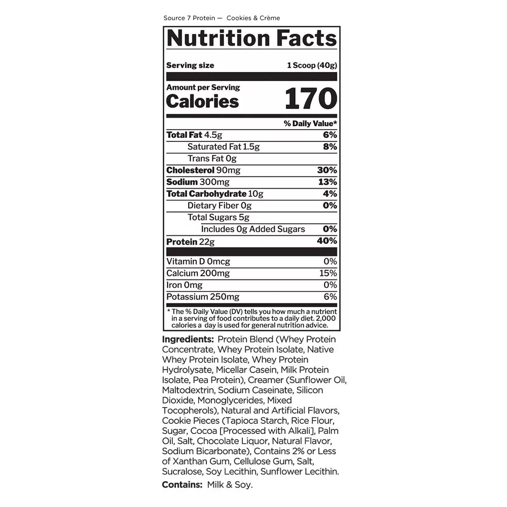 Source 7 Protein combina sette fonti proteiche premium in ogni shake ultra-cremoso ed estremamente goloso. Il sapore eccezionalmente gradevole è accompagnato da una facile miscelazione e da 22 grammi di proteine di alta qualità per porzione. È perfetto per chiunque inizi un percorso proteico o cerchi un cambiamento gustoso dalla solita dose: Source 7 Protein è un’ottima aggiunta, in qualsiasi momento della giornata, a uno stile di vita attivo.