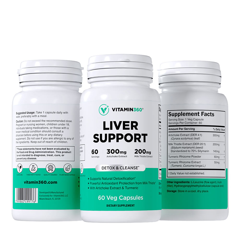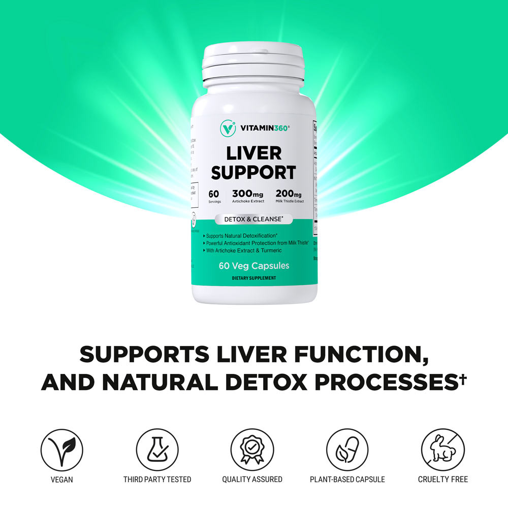 Il Vitamin360 Liver Support è un integratore alimentare complesso basato su ingredienti naturali per supportare la salute del fegato. Il contenuto in silimarina dell’estratto di cardo mariano contribuisce al mantenimento della salute epatica, mentre l’estratto di carciofo favorisce la digestione e la normale funzione della bile. È una formula pensata per l’uso quotidiano, che aiuta i naturali processi metabolici dell’organismo e si inserisce perfettamente in uno stile di vita equilibrato.
